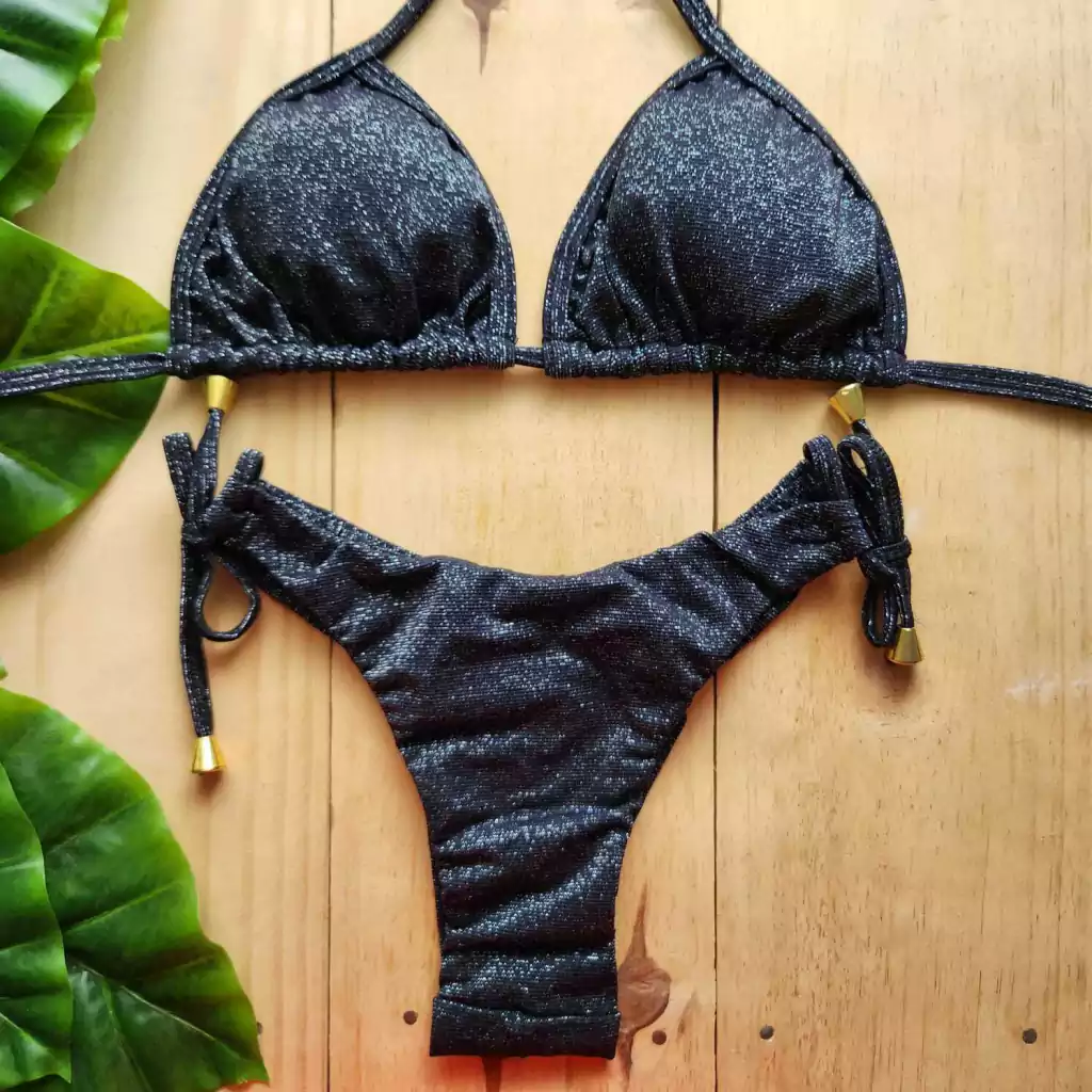 Conjunto Cortininha movél, calcinha semi-fio com regulagem lateral.